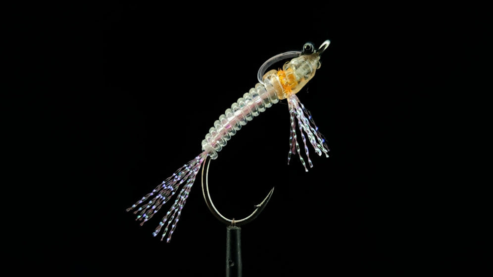 Here it is, the Shrimp that everyone wants on their Barbie, Joe's Celluloid Shrimp, served without garlic sauce. We've had a lot of people asking about the tying video for their this fly, and Joe himself kindly approved it, even with my personal changes to the pattern. The full-length tutorial is now live on our YouTube channel if you want to sit through 19 odd minutes of my droll voice. Otherwise, you can find the Step-By-Step in print in Issue 117 of FlyLife Magazine by the very talented @flymaxaustralia. And of course, the two essential materials for this pattern, Joe's Stretch Cord and Joe's Flat Cord, are available from the Troutlore Flytying Store website all day, and every day. So, get Get yours today and start shrimpin'