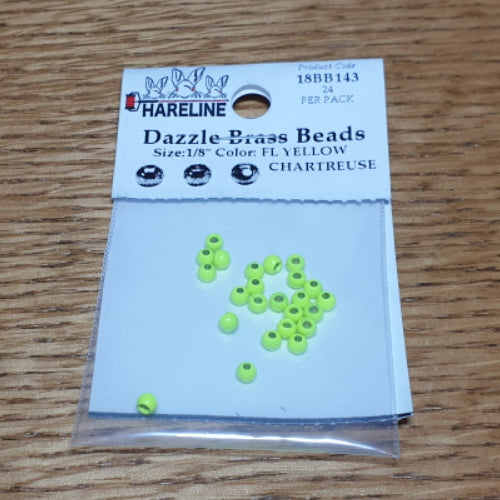 Hareline Dazzle Brass Beads Fl. Chartreuse – 24 Pcs