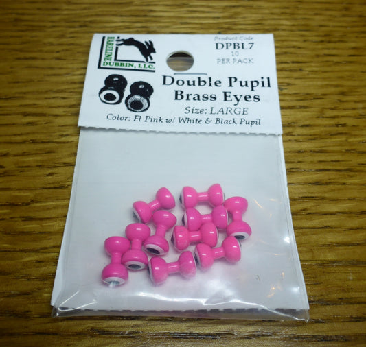 Hareline Double Pupil Brass Eyes Fl Pink – 10 Pcs