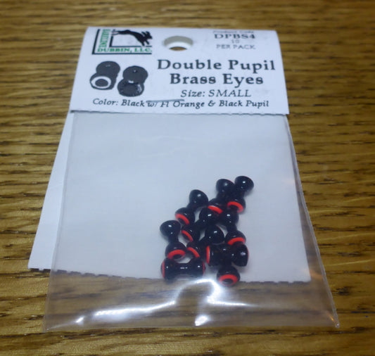 Hareline Double Pupil Brass Eyes Black & Orange – 10 Pcs