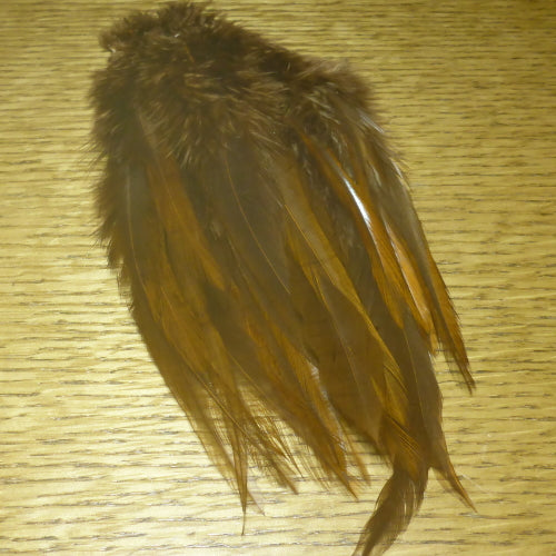 Hareline Strung Saddle Hackle 5-7 Inch Fiery Brown
