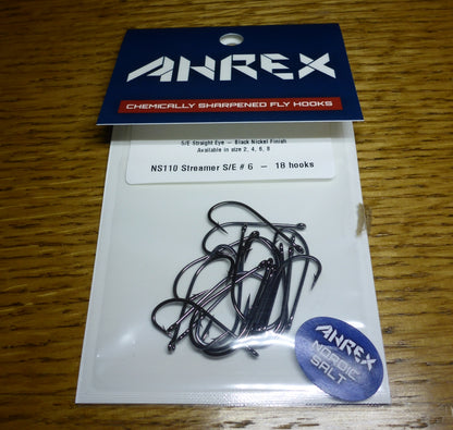 Ahrex NS110 is a straight eye streamer hook. Made in strong wire that will hold even the biggest seatrout. Super sharp point and small barb. Most classic saltwater streamer patterns will look beautiful on this hook.