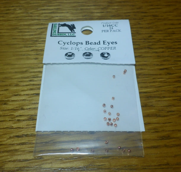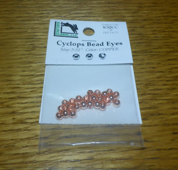 The Hareline Cyclops Bead Eyes range are a standard brass bead head made specifically for fly tying and is counter-drilled for easily sliding around the hook curve.