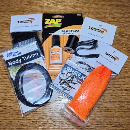Due to supply shortages, we are sometimes unable to make up kits with the exact products as shown in the image. If specific materials are unavailable for these kits, we will replace them with an appropriate alternative to complete the kit. This should not affect the end result in the completed fly.
