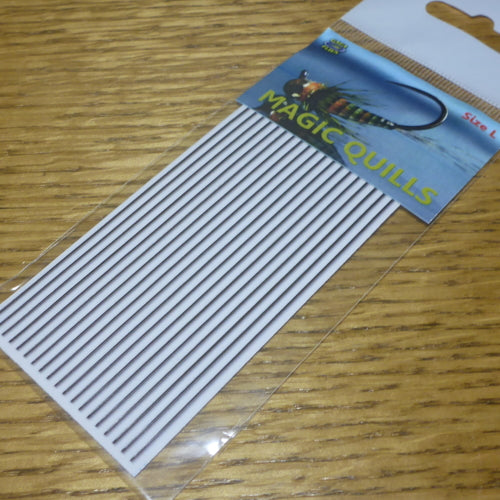 Magic Quills are synthetic quills for insect imitations. Magic Quills are made of extremely thin vinyl with adhesive back for fast and easy using. Wind around shaped & weighted & coloured body and coat with lacquer or UV glue. Perfect for creating segmented looking bodies for insect imitations.