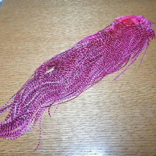 Hareline Grizzly Half Saddle represent a very nice grade #2 half saddle from Keough Hackles. These come with long, narrow feathers, that are ideal for trout, salmon, saltwater and native flies. Available in natural grizzly and dyed colors over the natural.