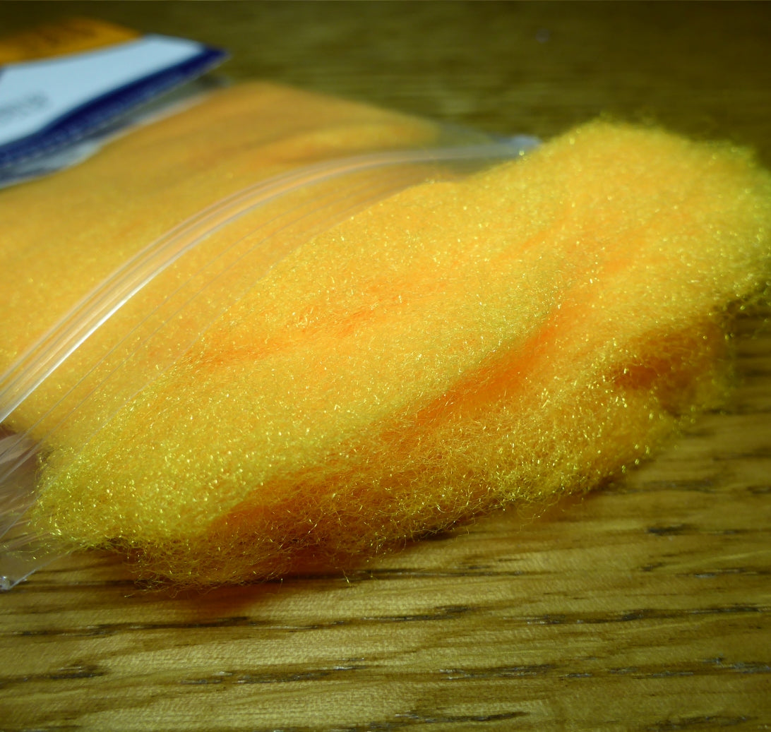 This is a relatively coarse dubbing designed for larger stonefly, steelhead, streamer and saltwater patterns. Folks are loving this 100% multi spectrum dubbing for minnows, intruders and stone fly nymphs. I love it for buggers and leeches.