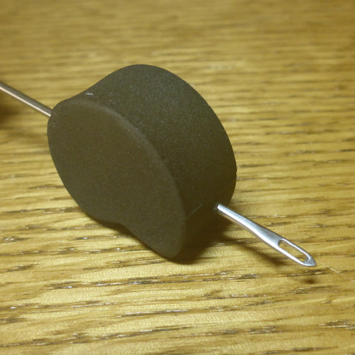 Zuddy’s Leg Puller can pull your rubber legs through the most dense foam, plastic or other soft materials! The solid wood handle is smartly designed. With a flat edge on one side, this stops it from rolling off you fly tying bench. This tool is strong enough even for hard jobs like stitching together leather, hide or other tough material. Pass the needle through the popper body and stretch leg material over the gap in the needle. Release the leg and pull it through the body.